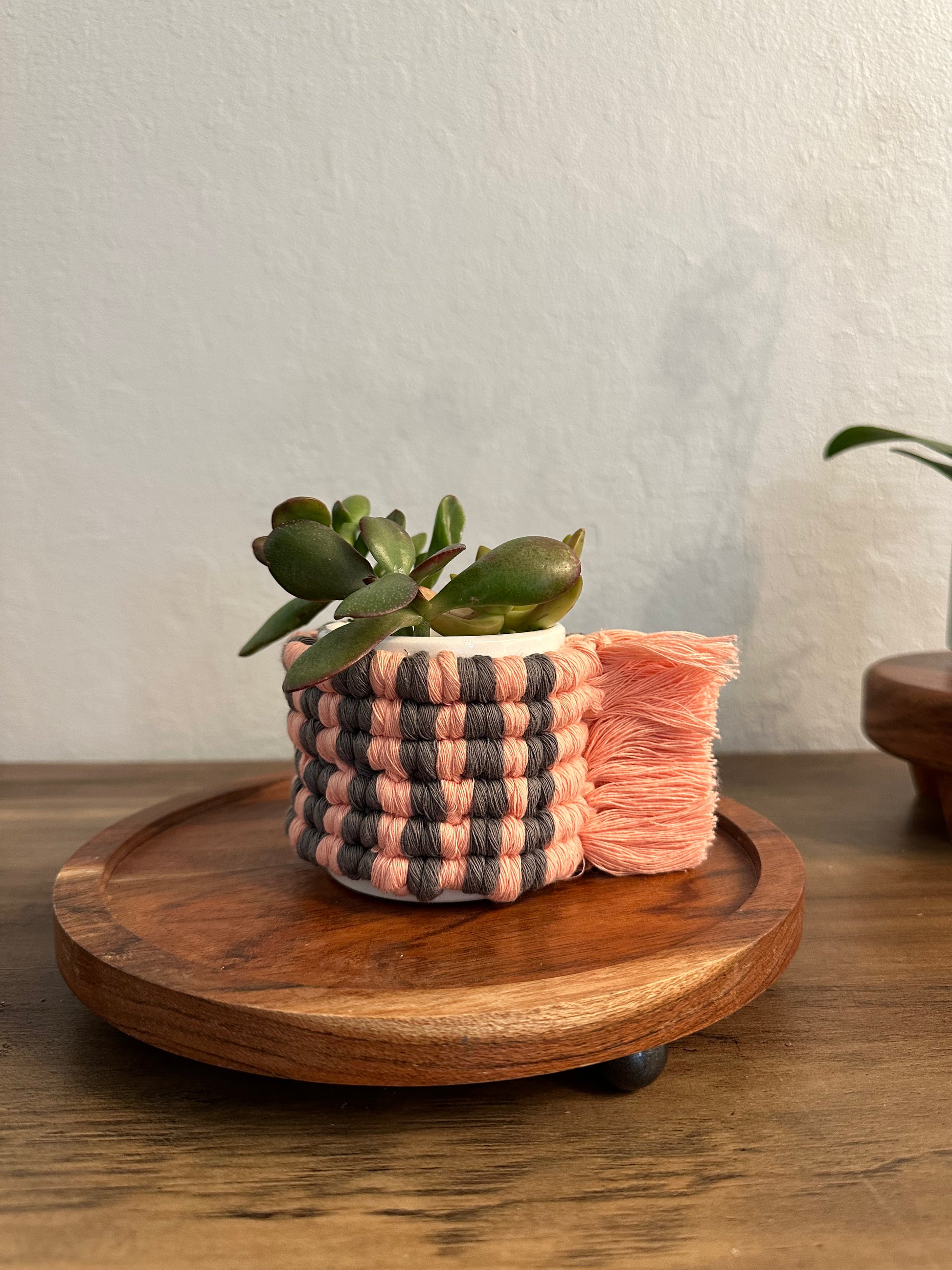 Macrame planter wrap.
