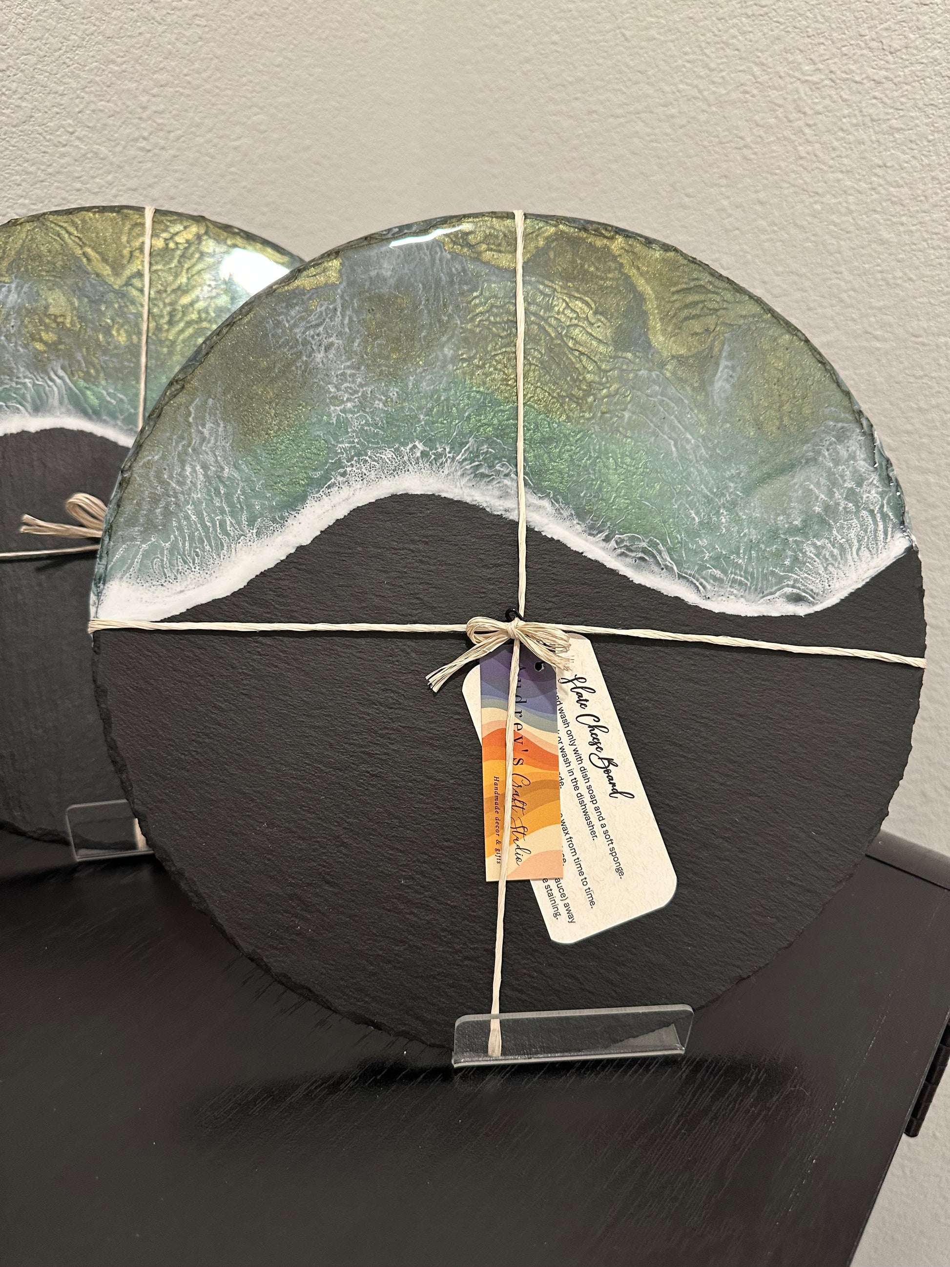 Resin design, placement, and color distribution will vary and may not look exactly like the photos. Natural slate texture and resin flow ensure each board is unique.
